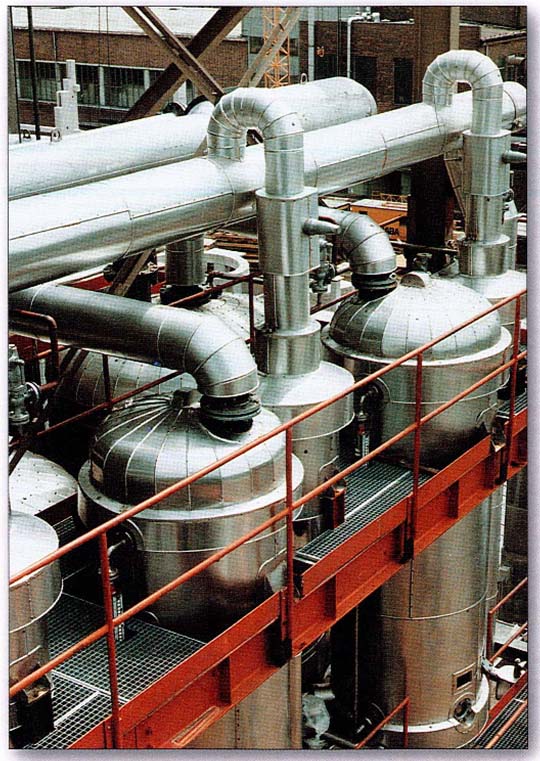 蒸發(fā)設(shè)備可分為普通多效蒸發(fā)器和閃蒸設(shè)備。Ebner閃急蒸發(fā)(簡(jiǎn)稱閃蒸)設(shè)備是一種高效的多級(jí)連續(xù)真空蒸發(fā)設(shè)備,尤其適用于蒸發(fā)能力在5t/h以上,閃蒸設(shè)備因?yàn)槠湔舭l(fā)能力強(qiáng)、蒸汽耗用量小已在國內(nèi)廣泛推廣使用。酸浴閃蒸的特點(diǎn)是: