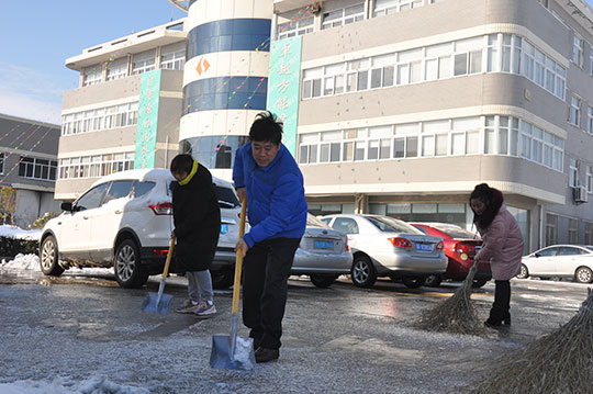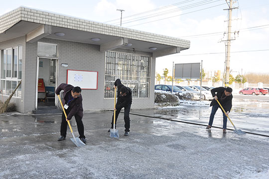 26日一大早,三圣高管團隊在馮圣君董事長的帶領之下,操起鐵鍬,揮舞掃帚,分區(qū)分片,親自清除廠區(qū)主干道上的結(jié)冰積雪。為了安全與暢通,現(xiàn)場熱火朝天。
