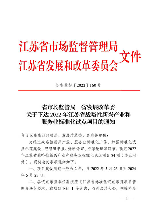 江蘇省戰(zhàn)略性新興產(chǎn)業(yè)標(biāo)準(zhǔn)化試點項目由省市場監(jiān)督管理局和省發(fā)展和改革委員會共同組織。項目對申報單位有著明確的要求:市場占有率和經(jīng)濟效益排名位于本地區(qū)同行業(yè)前列,具有良好的發(fā)展?jié)摿?,具備統(tǒng)籌技術(shù)創(chuàng)新、標(biāo)準(zhǔn)研制和產(chǎn)業(yè)化的能力等等。